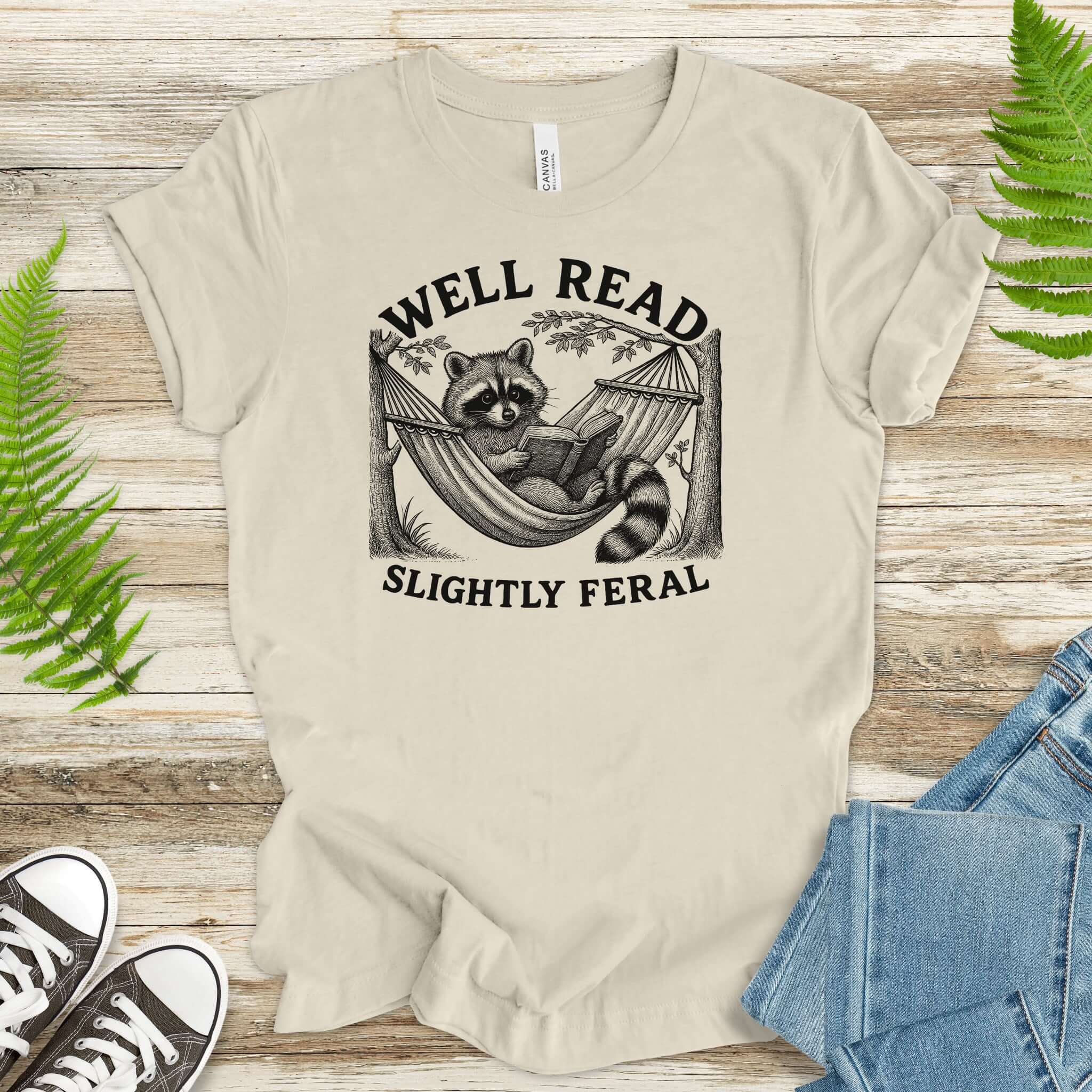 For the reader who devours novels under moonlight and snacks like a mischievous woodland bandit, this shirt speaks fluent “you.” Our scholarly raccoon lounges in a hammock, plotting their next chapter—and maybe their next snack heist.