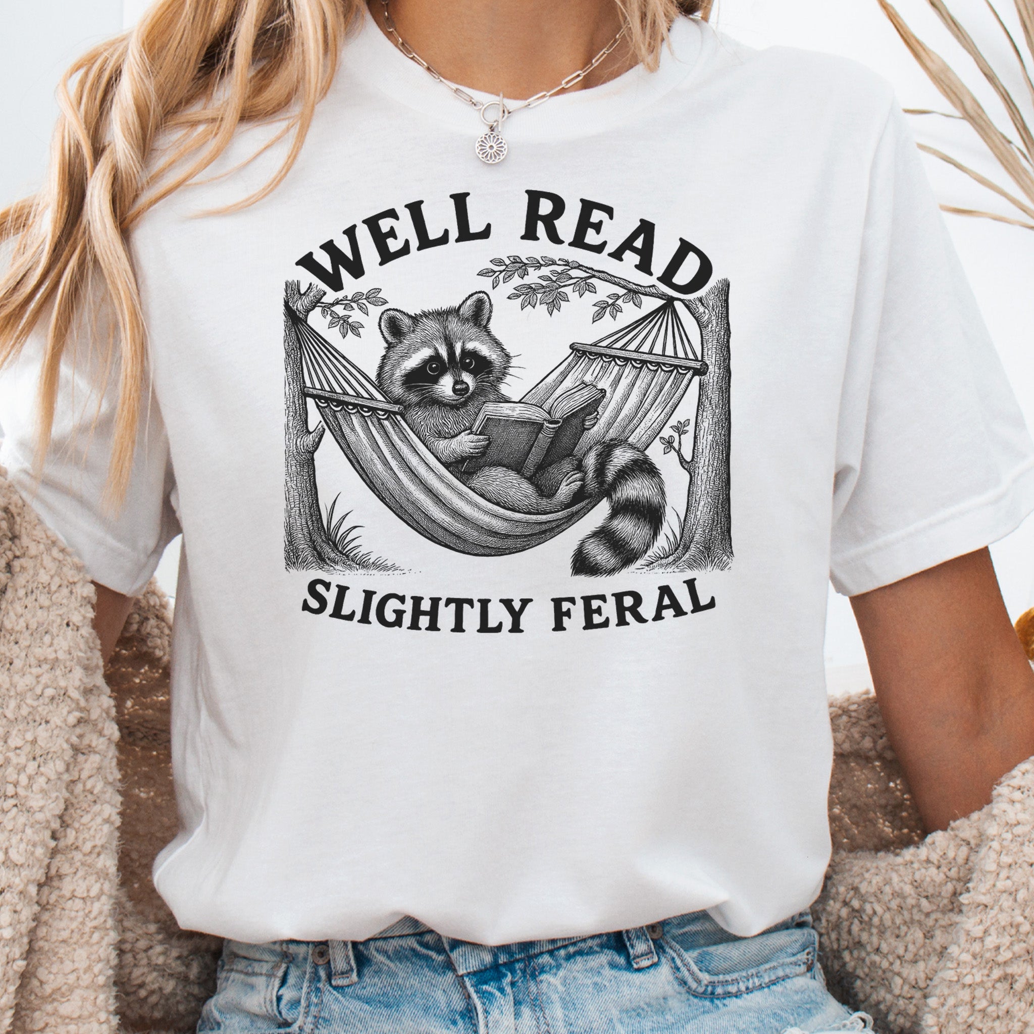 Perfect for raccoon lovers, bookworms, and anyone who identifies as slightly feral. ✨ Ideal for cozy reading days, book club laughs, or as a cheeky book lover gift. Wear it proudly and let the world know: you’re a little wild, but very well read.