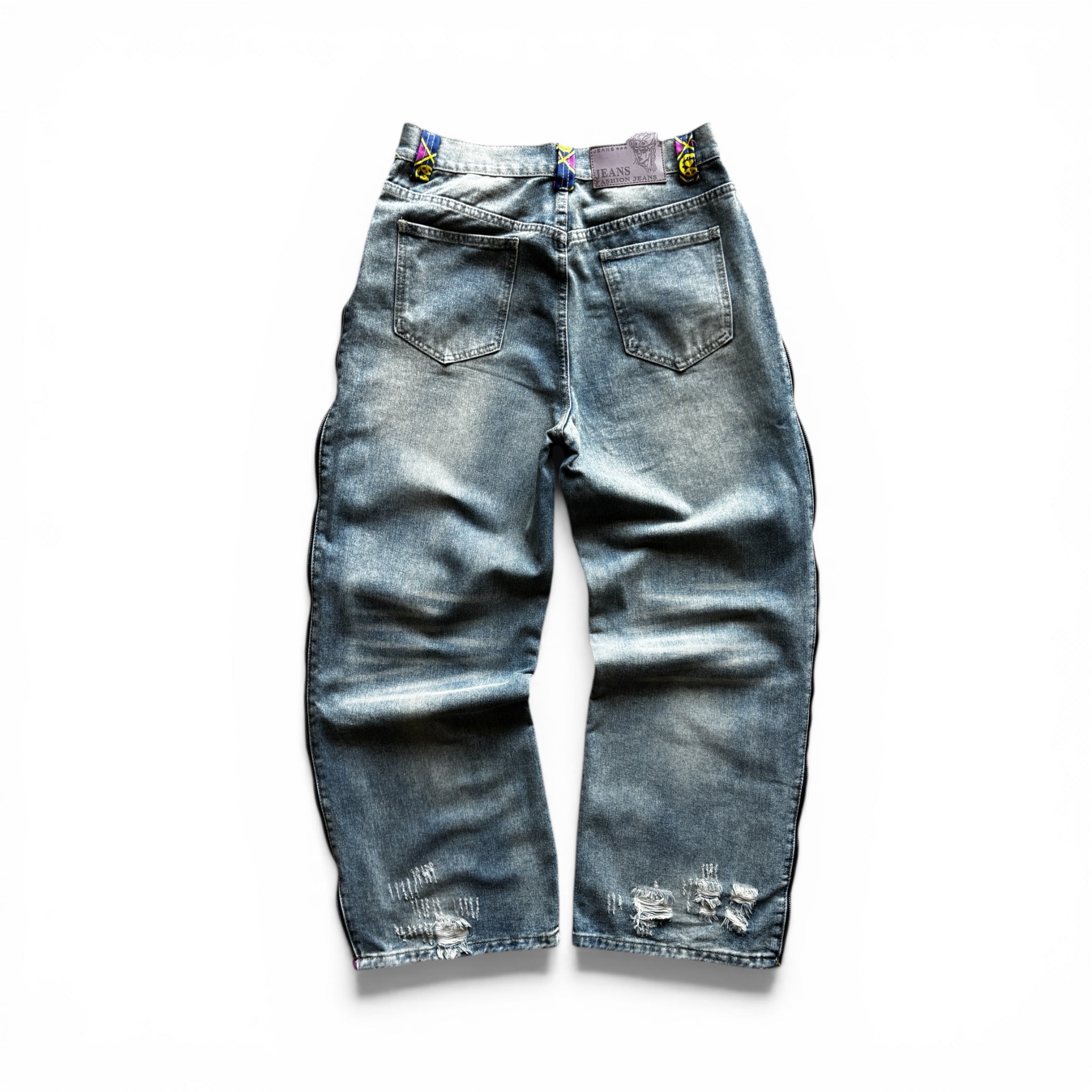 These Jeans are Inspired by one of the best Jo Bros, Bruno Bucciarati and his stand Sticky Fingers. Made from 14 oz Cotton Denim the jeans features full length zippers on both sides revealing a jjba themed design.