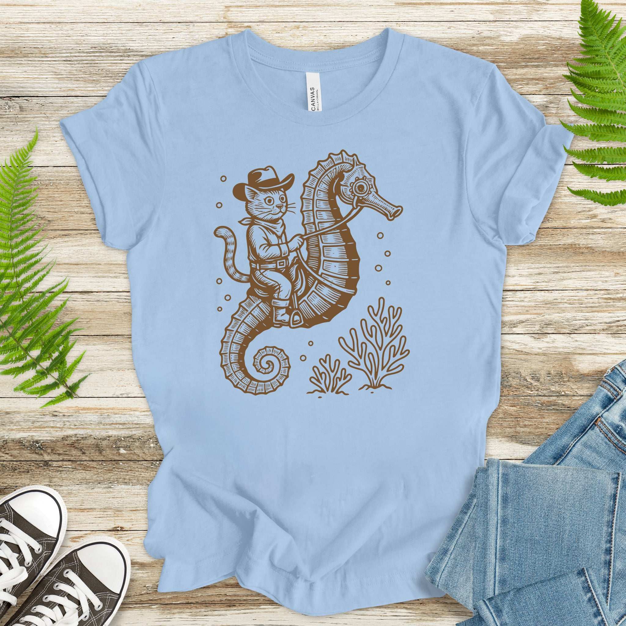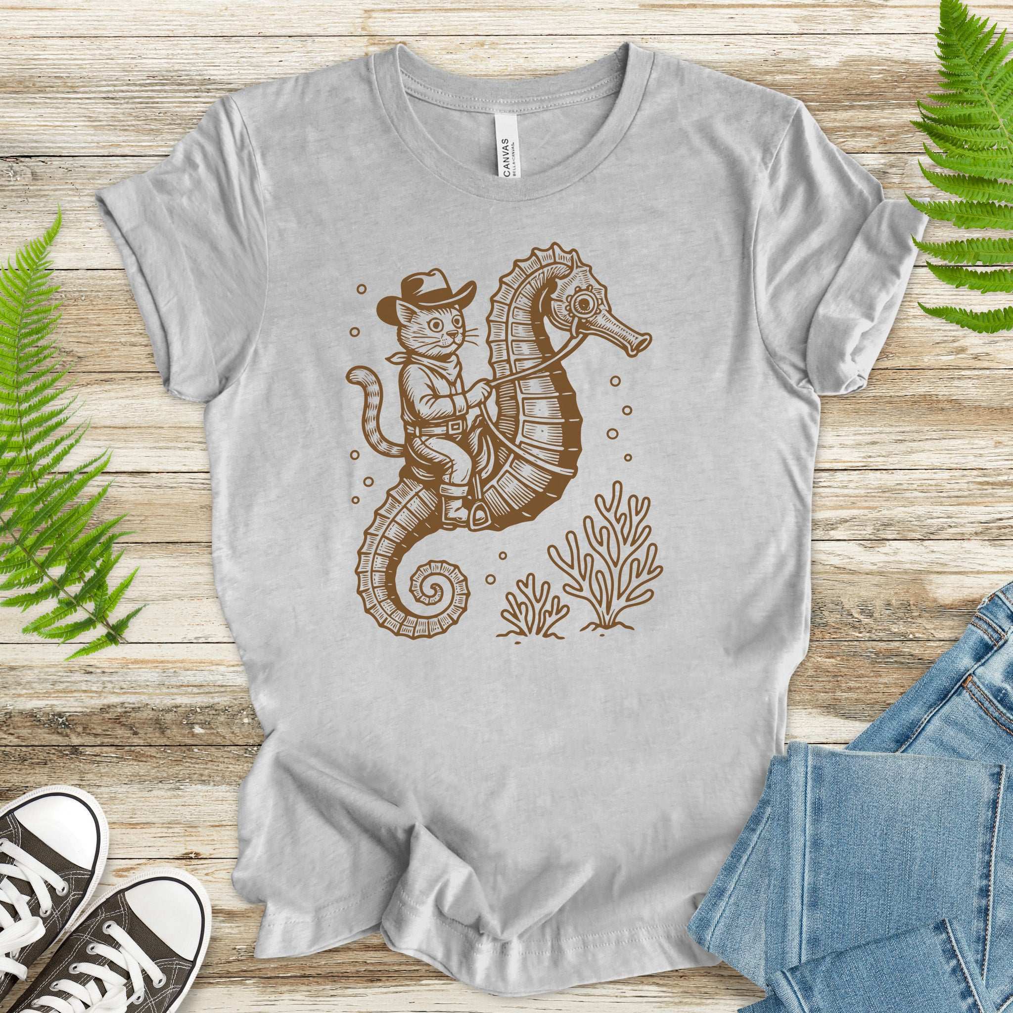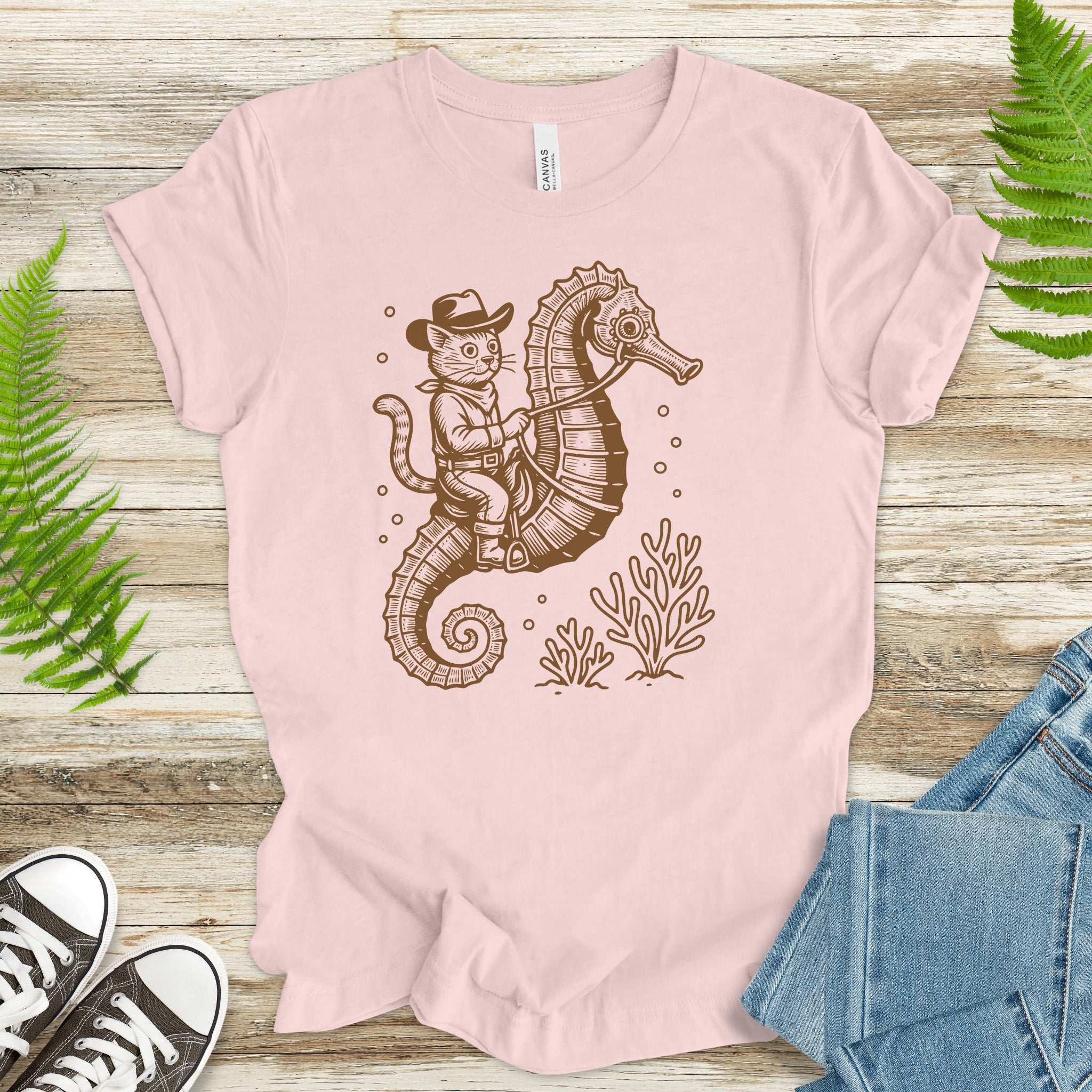 Cowboy Cat Seahorse T-Shirt – Retro Ocean Rodeo Animal Lover Tee