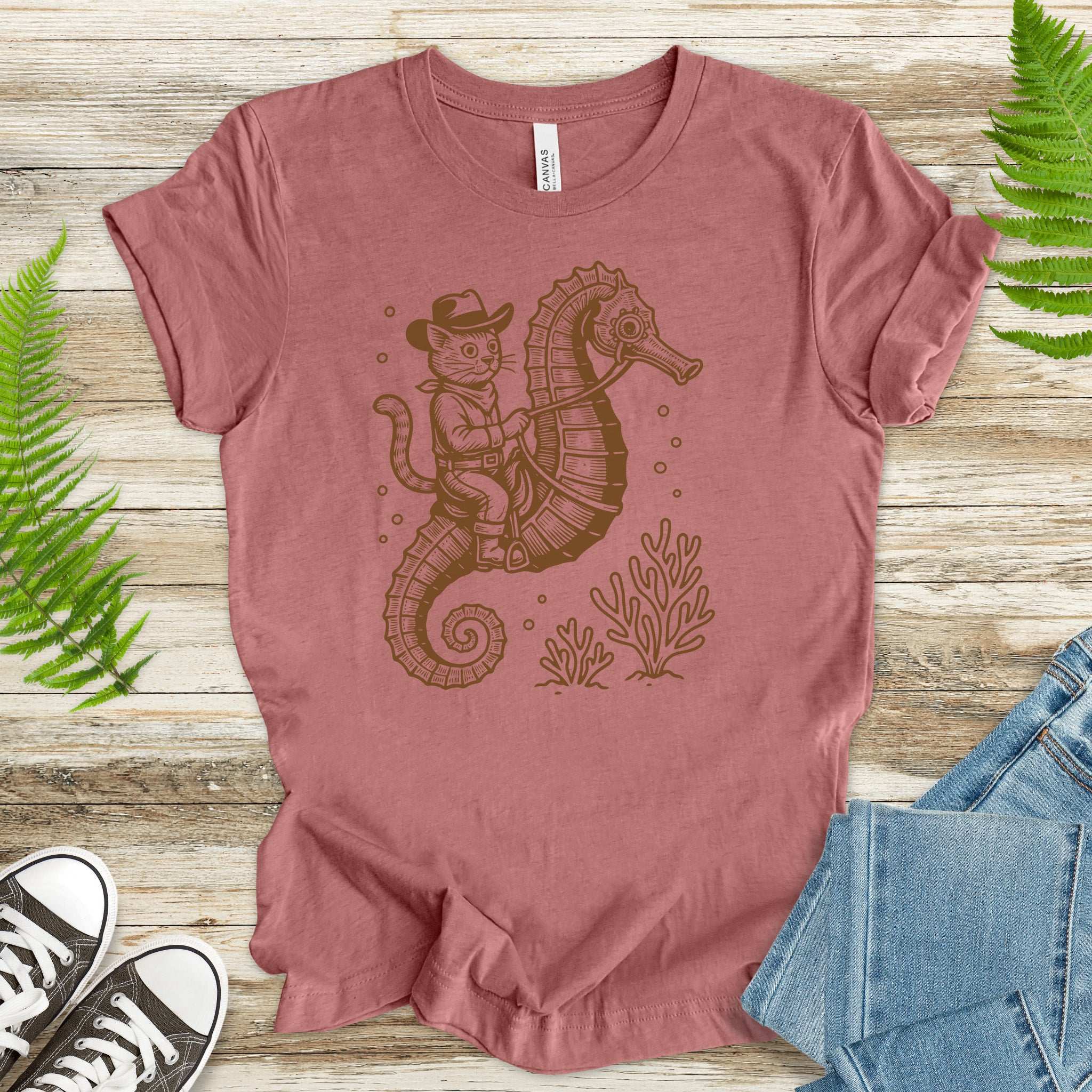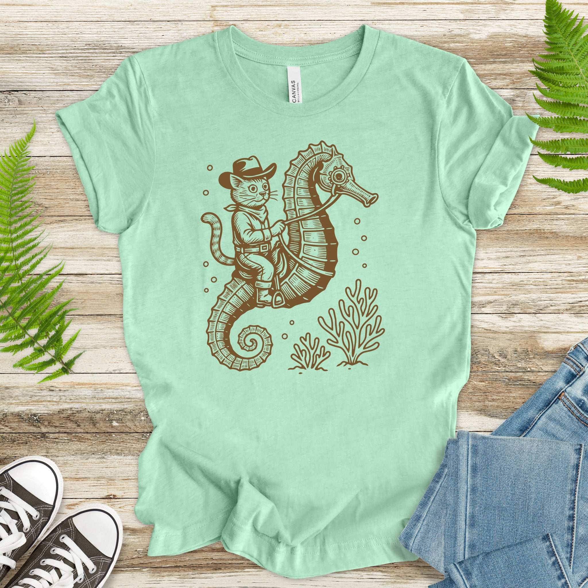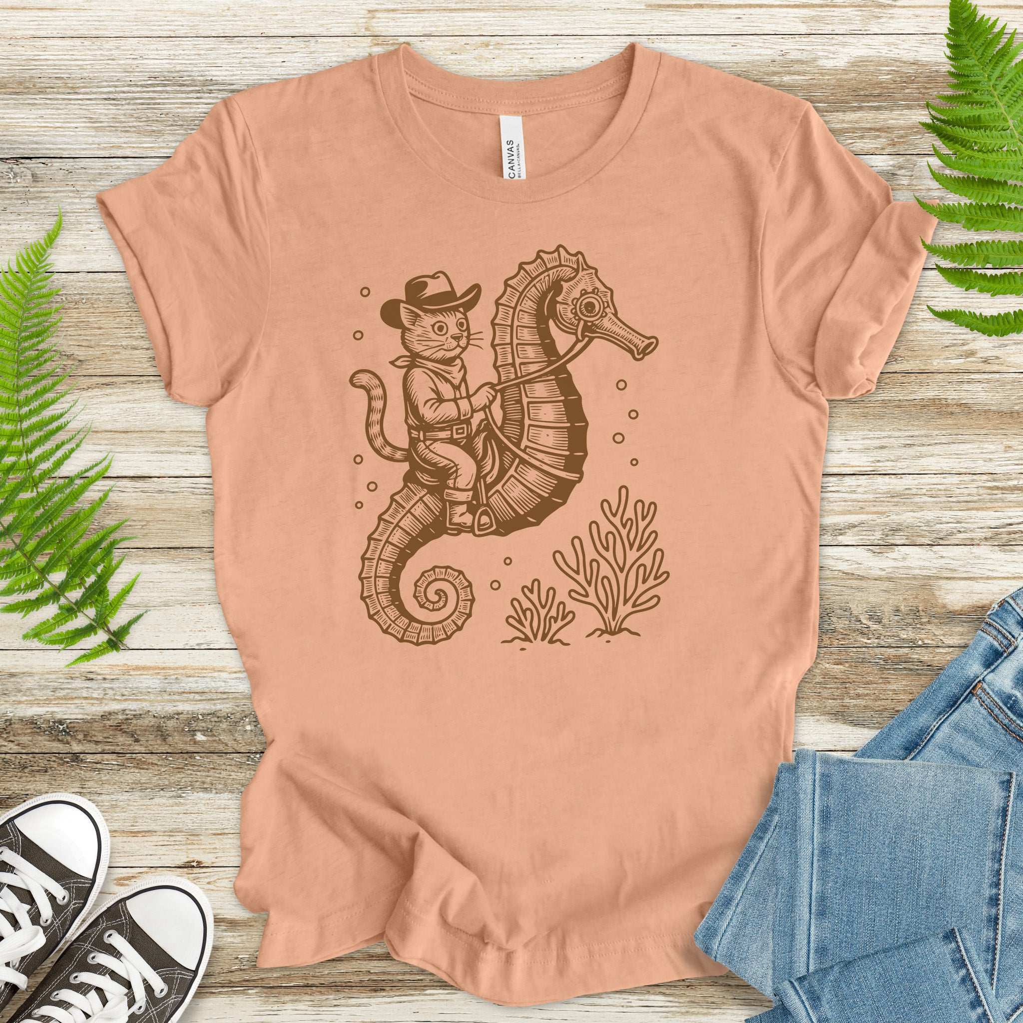 Cowboy Cat Seahorse T-Shirt – Retro Ocean Rodeo Animal Lover Tee