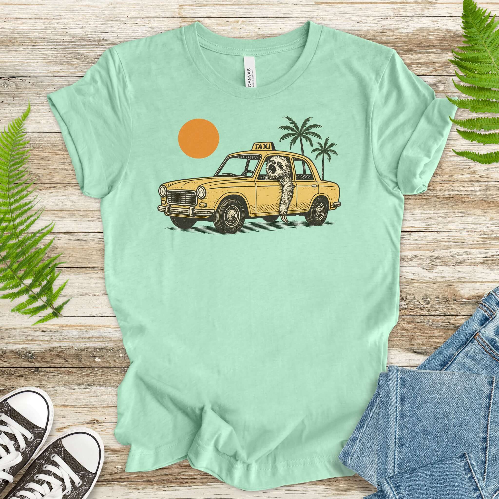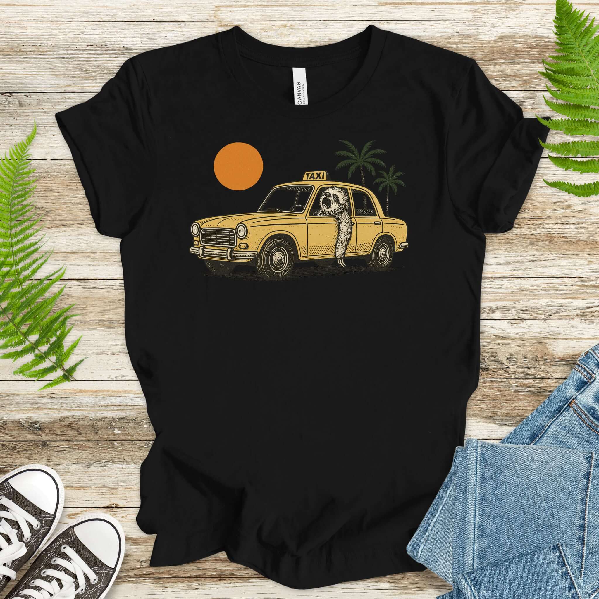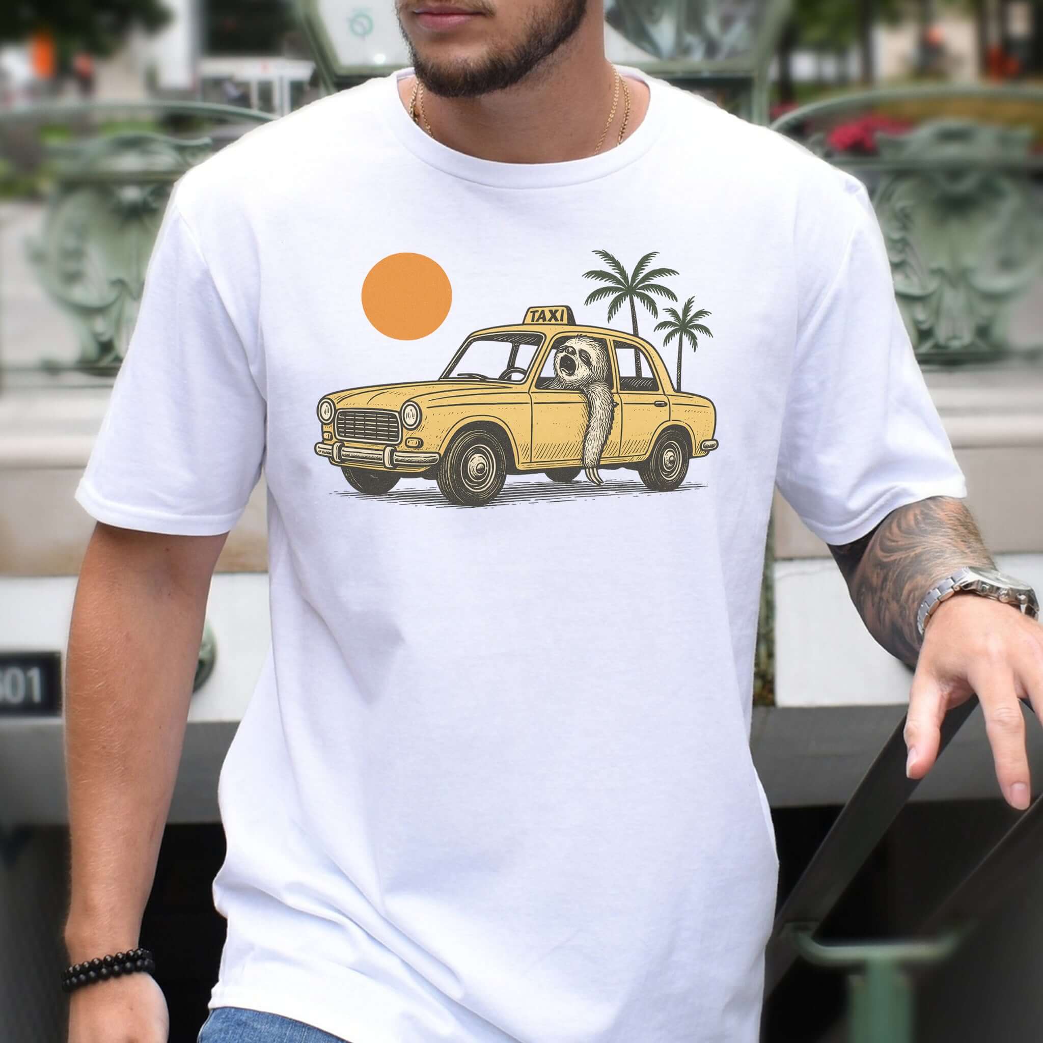 Sloth Taxi Driver T-Shirt – Funny Sloth Lover Shirt with Sunset & Palms