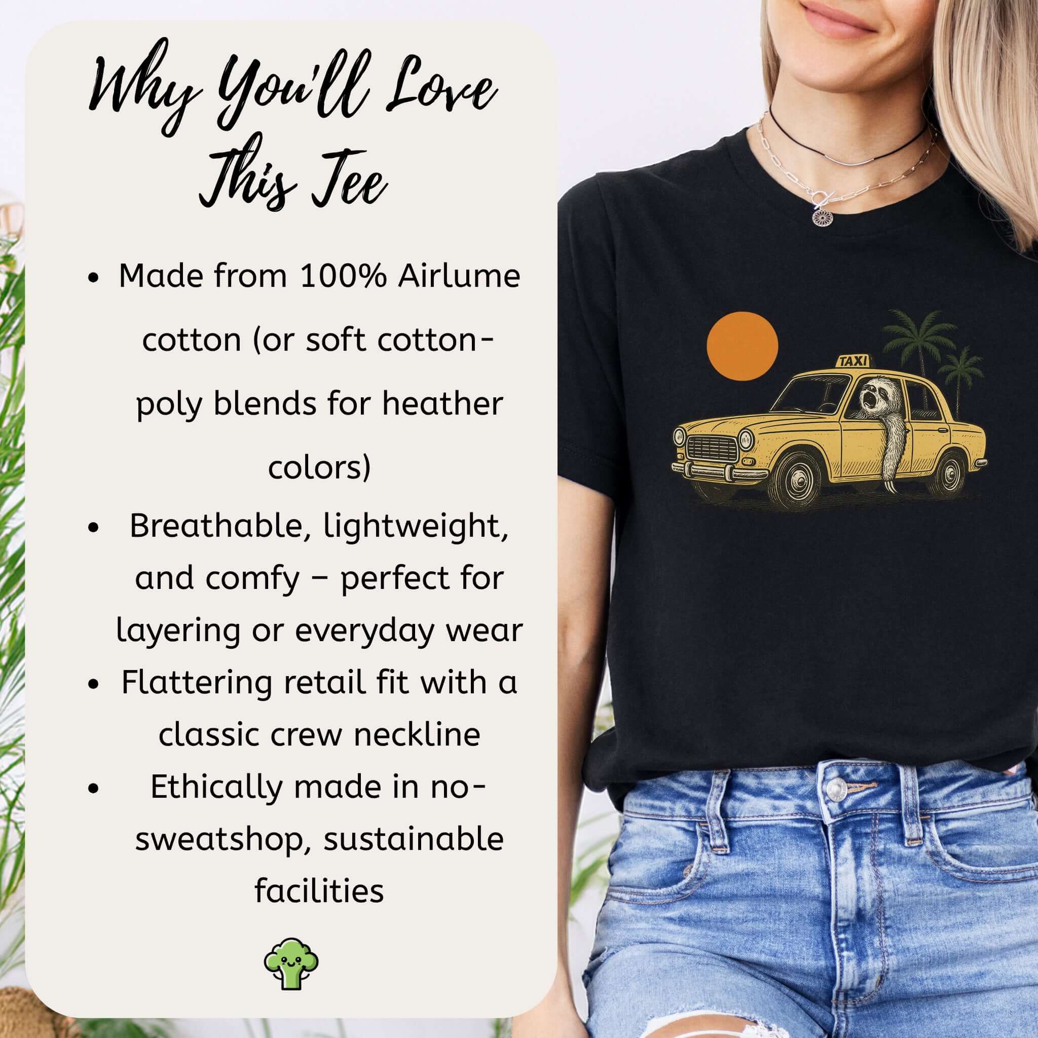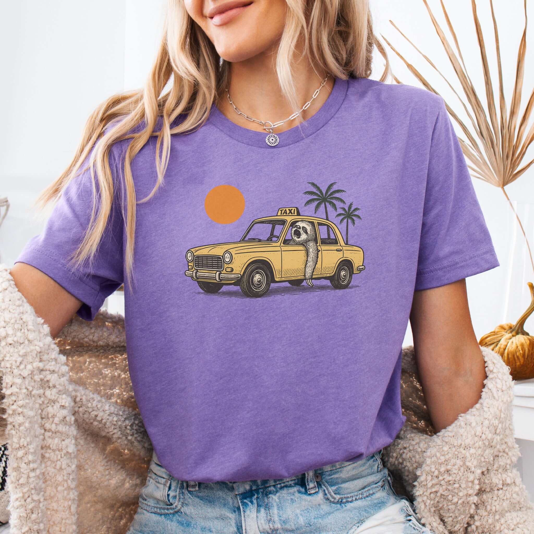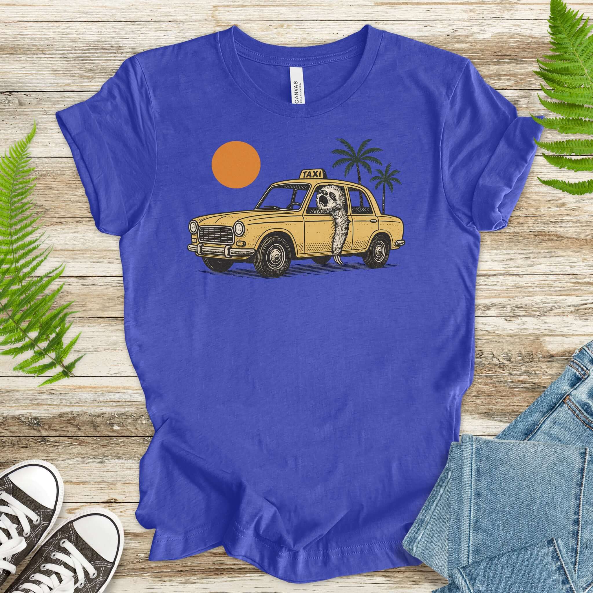 Sloth Taxi Driver T-Shirt – Funny Sloth Lover Shirt with Sunset & Palms